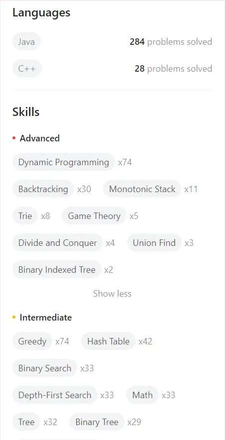 - 고급 토픽에 집중하기: 동적 프로그래밍(DP), 이진 검색, 그래프, 트리 및 우선순위 큐와 같은 주제는 인터뷰에서 자주 질문을 받으며, 익숙해 지기 위해서는 시간과 인내심이 필요하기 때문에 계속해서 집중합니다.