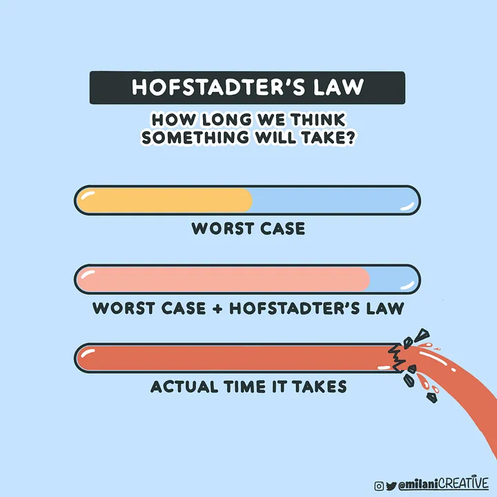 “ 호프스태터의 법칙을 고려하더라도, 예상보다 항상 시간이 더 걸린다." - Douglas Hofstadter